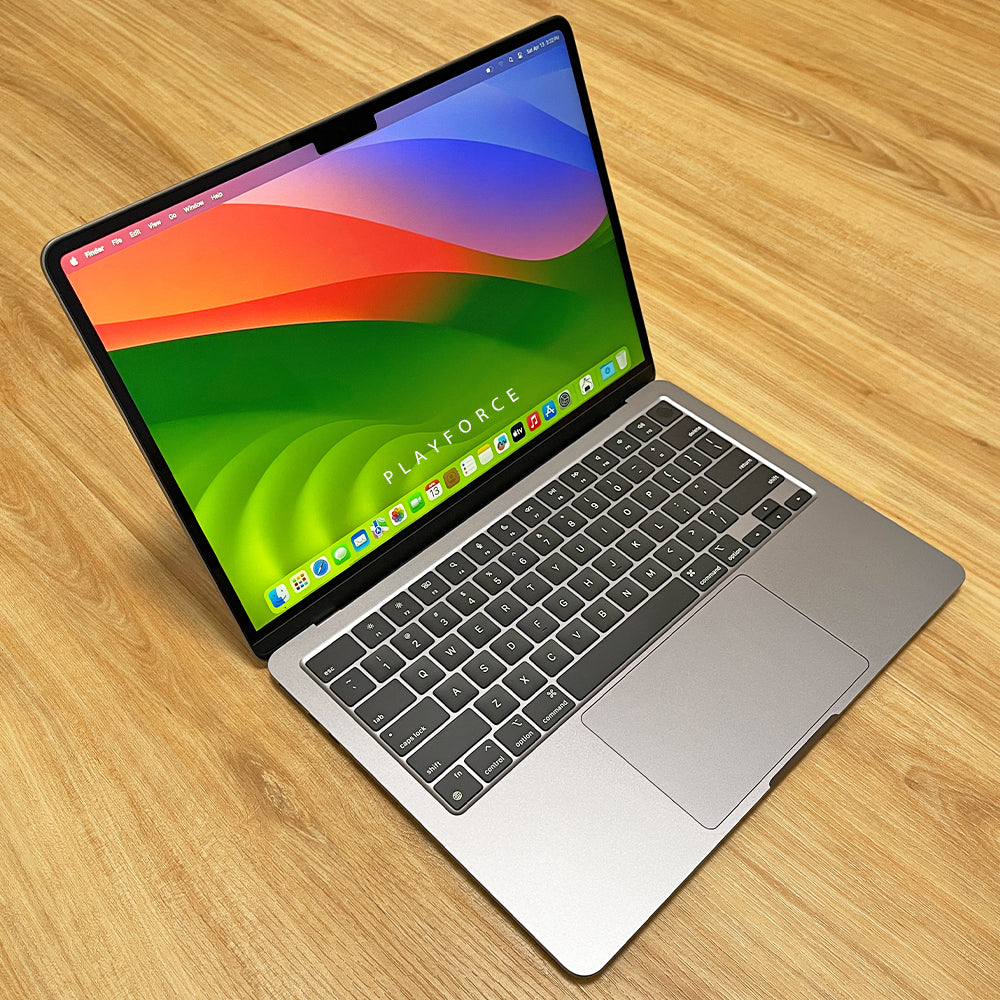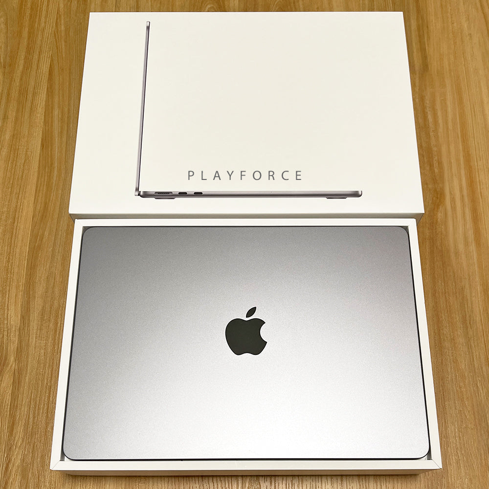 Details. Perfect Grade. AppleCare+ warranty till: Aug 2025Includes. Box, manual, & chargerSpecifications. M2 chip with 8‑core CPU, 8‑core GPU, and 16‑core Neural Engine. 13.6-inch Liquid Retina display with True Tone. 1080p FaceTime HD camera. 8GB Unified Memory. 256GB SSD Storage. MagSafe 3 charging port. Two Thunderbolt / USB 4 ports. Magic Keyboard with Touch ID. Force Touch trackpad. 30W Dual USB-C Port Power AdapterDelivery Options. Free delivery (Same day). Arrange collection at Seletar Mall (797653)
