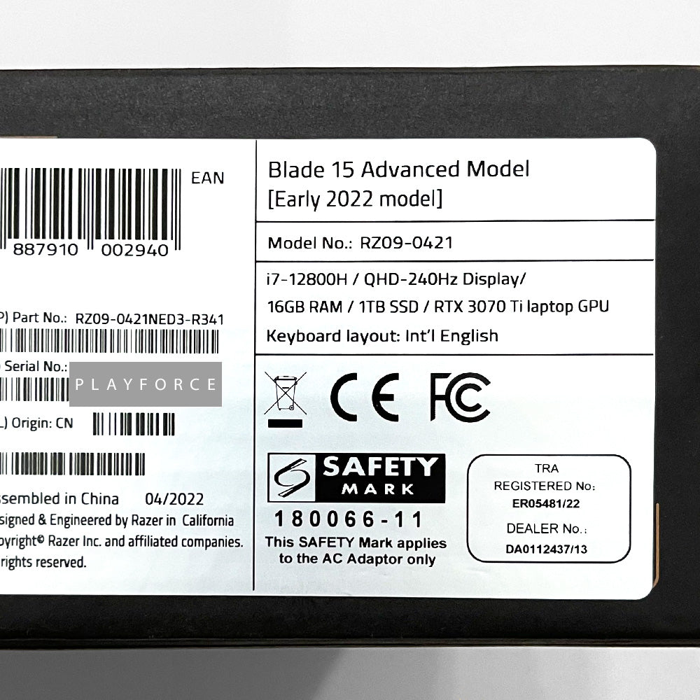 Razer Razer Blade 15 Advance 2022 (i7-12800H, RTX 3070Ti, 16GB, 1TB, QHD 240Hz, 15-inch)(New)